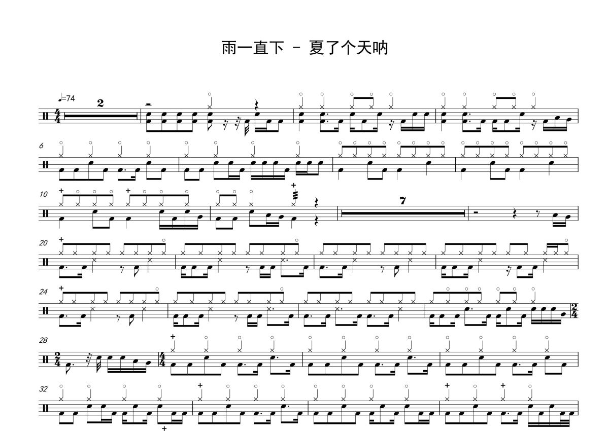 夏了个天呐《雨一直下》鼓谱 - 架子鼓谱