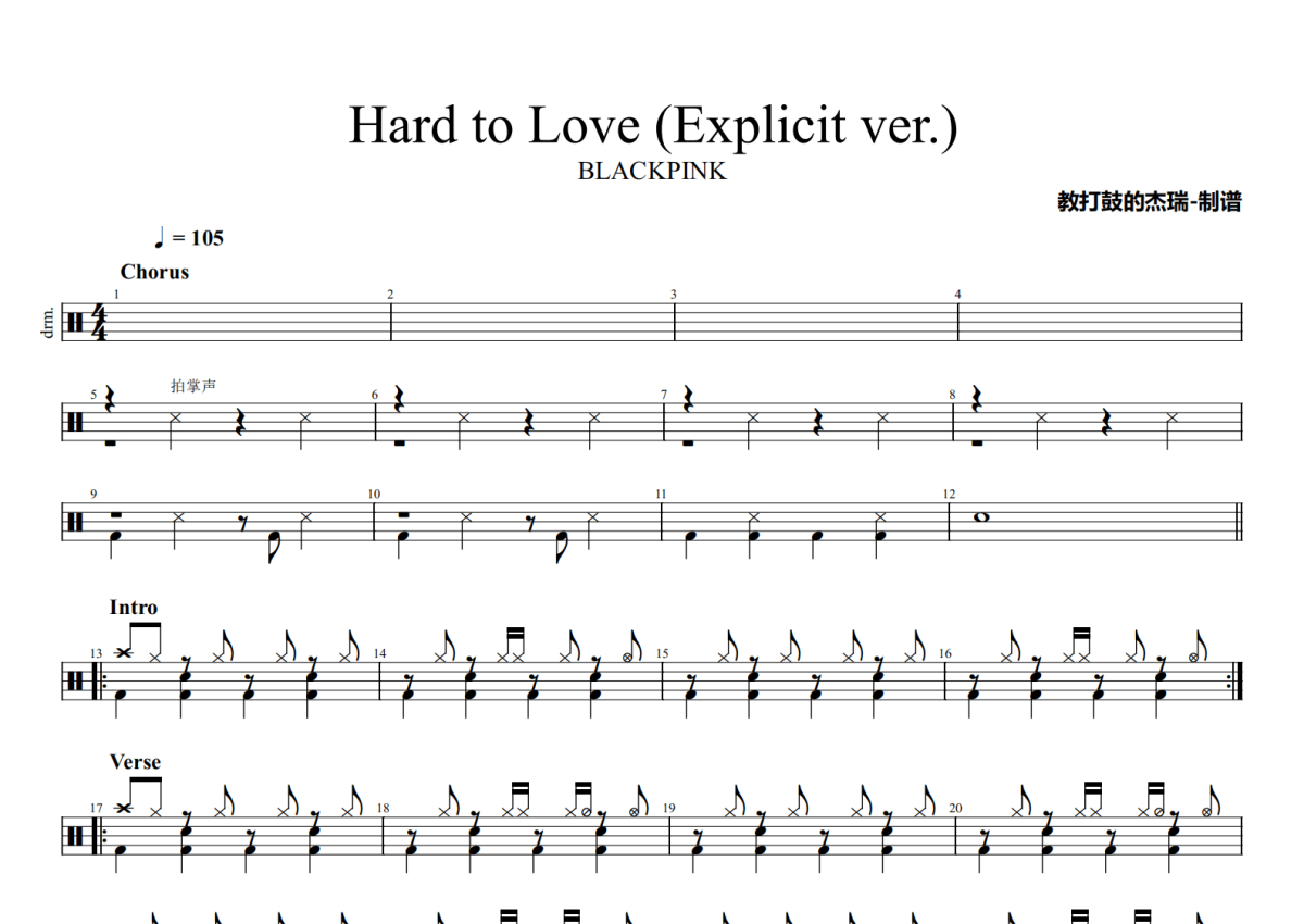 BLACKPINK《Hard to Love (Explicit ver.)》鼓谱 - 架子鼓谱