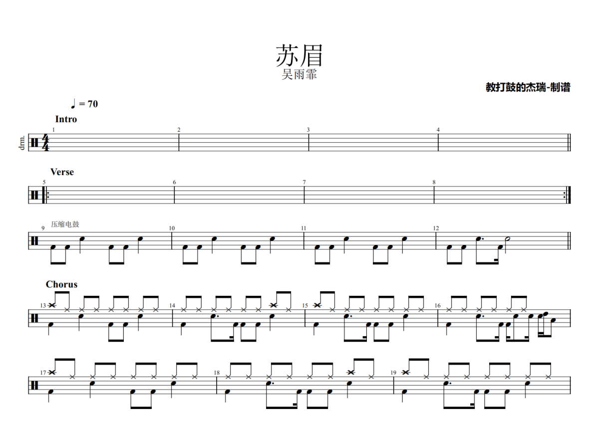 吴雨霏《苏眉》鼓谱 - 架子鼓谱