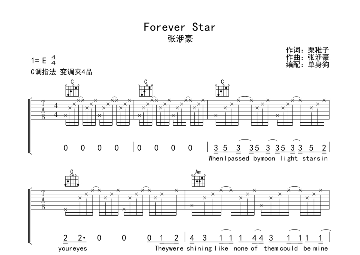 张洢豪《Forever Star》吉他谱 - C调弹唱六线谱