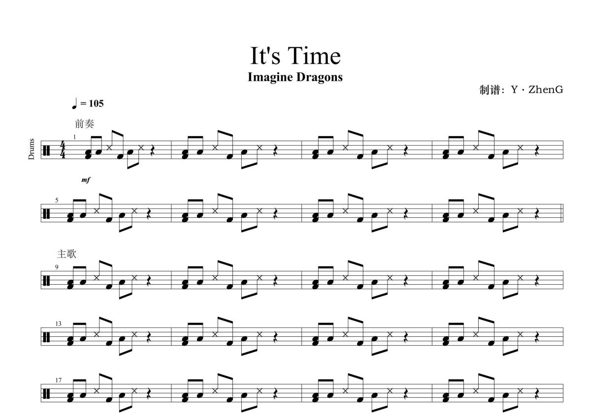 Imagine Dragons《It's Time》鼓谱 - 架子鼓谱