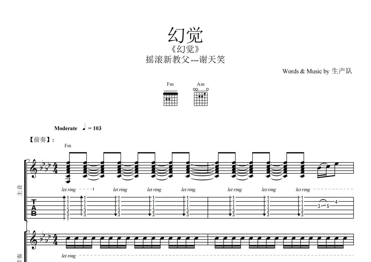 《幻觉》是谢天笑演唱的一首歌曲,拍号为4/4拍,歌曲速度为每分钟103拍,这份乐队总谱共有一张高清图谱,图谱由 @生产队 编配上传谢天笑演唱的《幻觉》,本吉他谱为根据原版编配的乐队总谱,包含:吉他(主音),吉他(节奏),贝斯,鼓,弦乐,主旋律共6轨,乐队总谱效果请听试听。完整版60页。