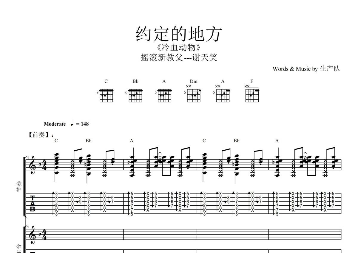 《约定的地方》是谢天笑演唱的一首歌曲,拍号为4/4拍,歌曲速度为每分钟148拍,这份乐队总谱共有一张高清图谱,图谱由 @生产队 编配上传谢天笑演唱的《约定的地方》,本吉他谱为根据原版编配的乐队总谱,包含:吉他(主音),吉他(节奏) ,贝斯,鼓,效果,主旋律共6轨,完整版共25页,乐队总谱效果请听试听。