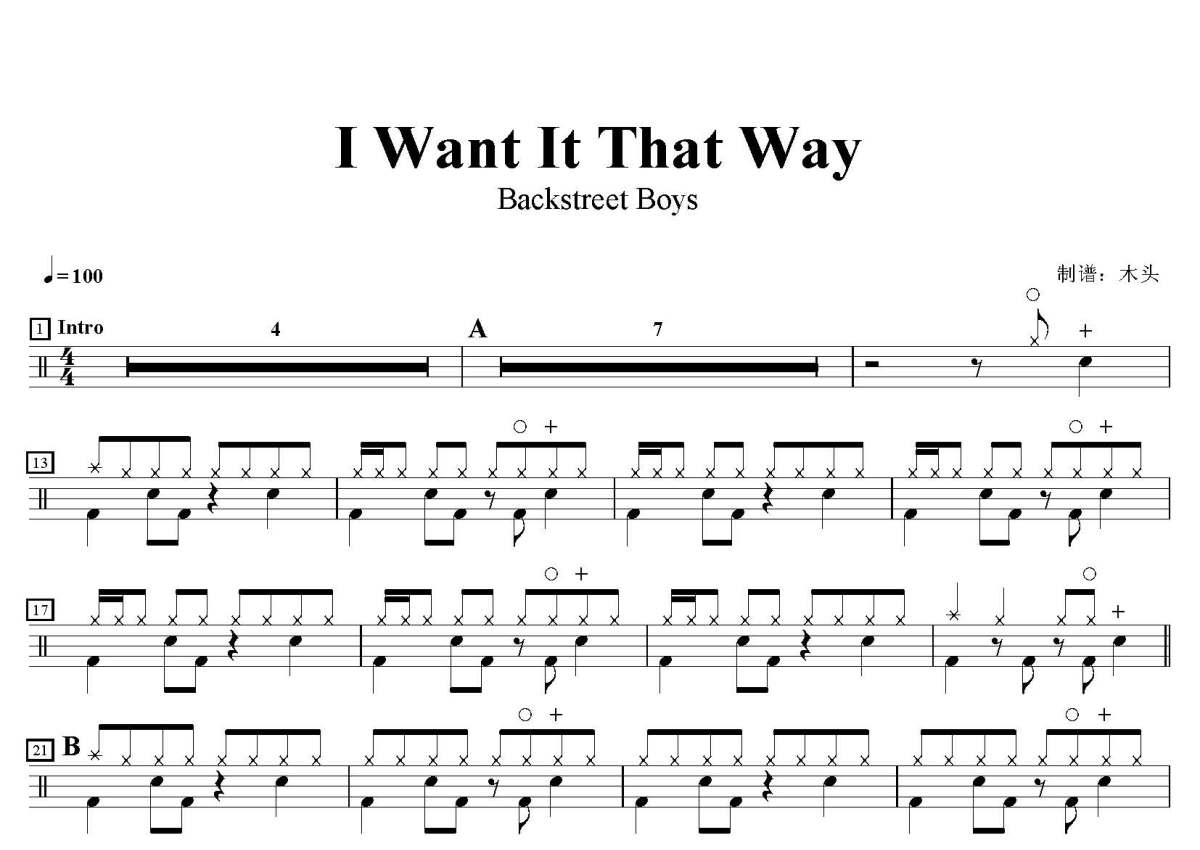 Backstreet Boys《I Want It That Way》鼓谱 - 架子鼓谱