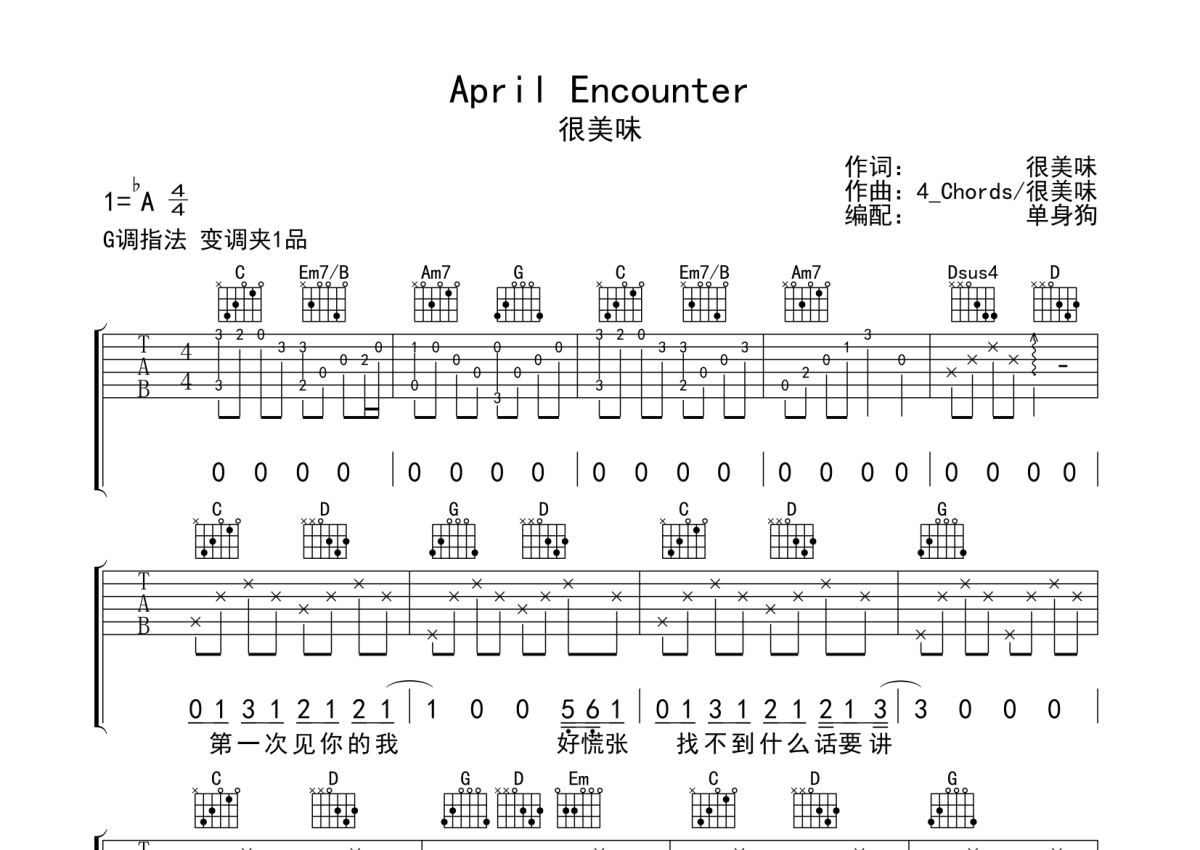 很美味《April Encounter》吉他谱 - G调弹唱六线谱