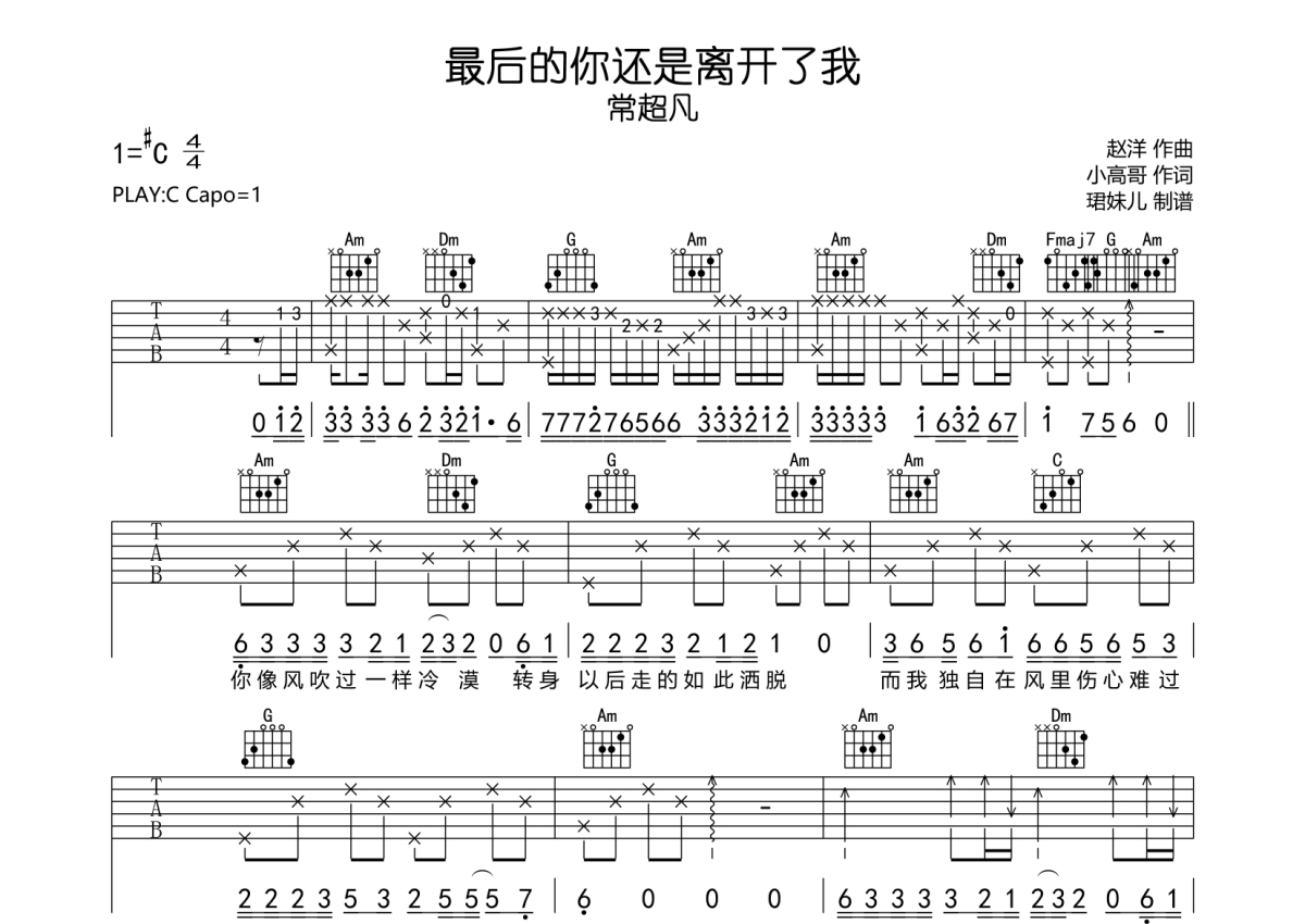 常超凡《最后的你还是离开了我》吉他谱 - C调弹唱六线谱