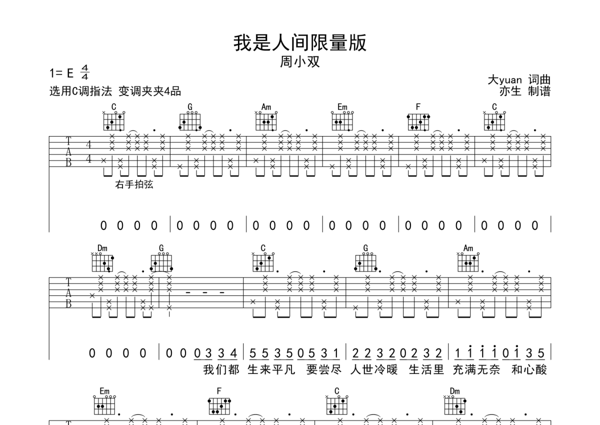 周小双《我是人间限量版》吉他谱 - C调弹唱六线谱
