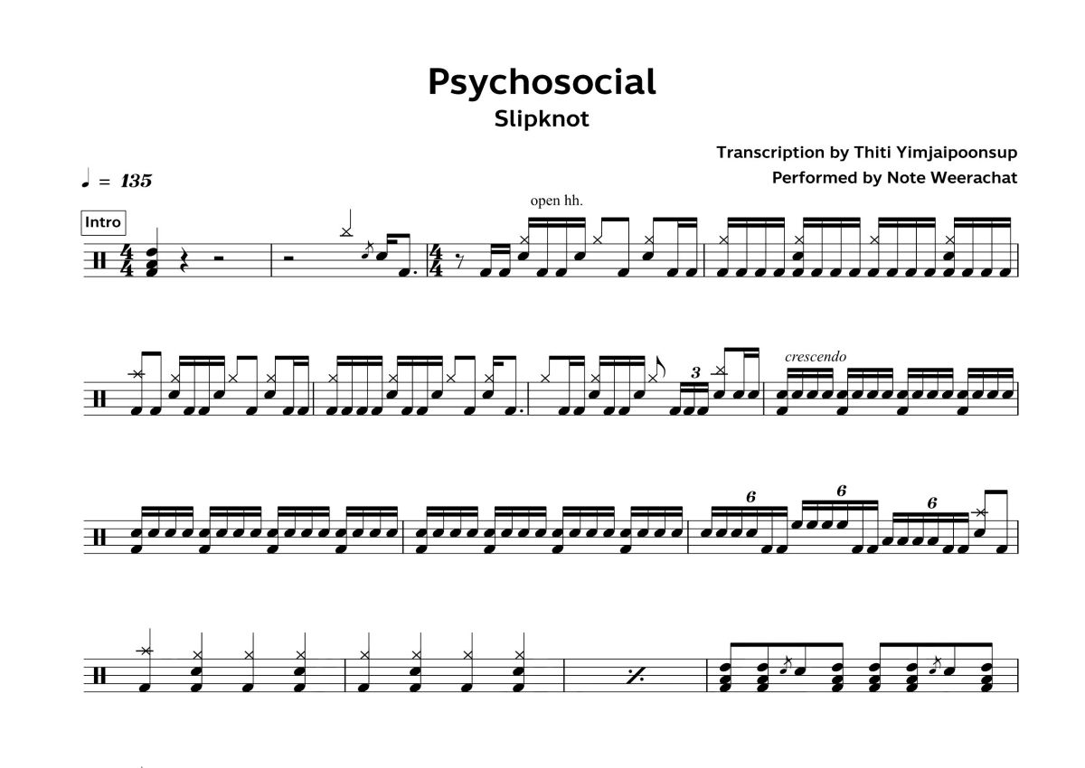 Slipknot活结《Psychosocial》鼓谱 - 架子鼓谱