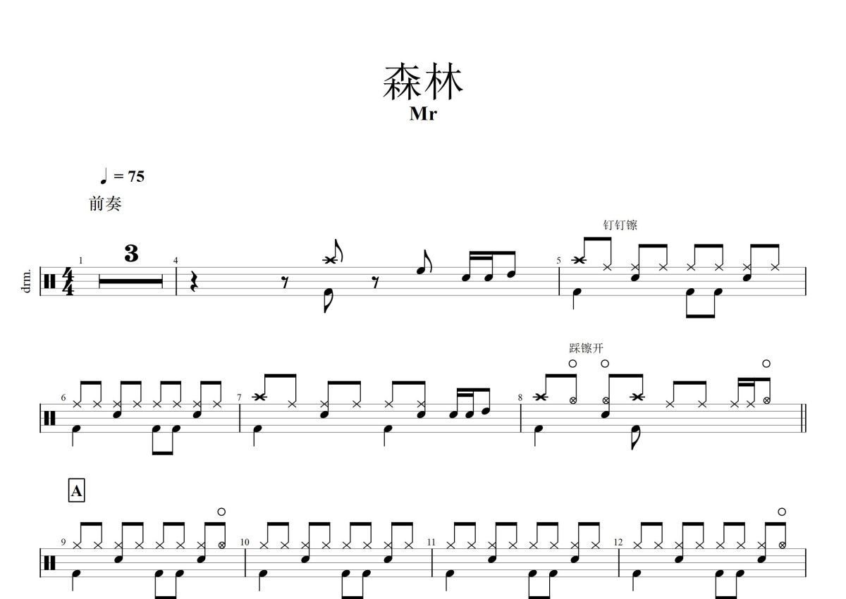 Mr《森林》鼓谱 - 架子鼓谱