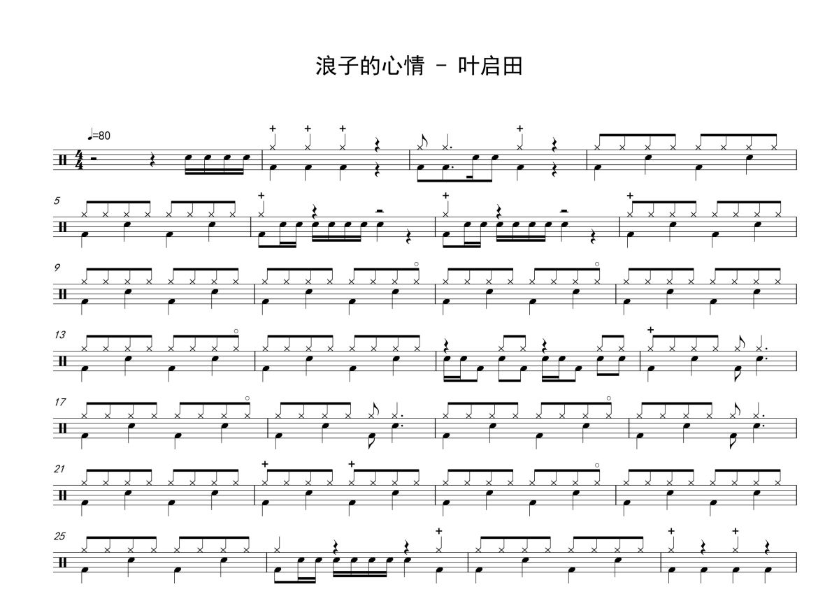 叶启田《浪子的心情》鼓谱 - 架子鼓谱