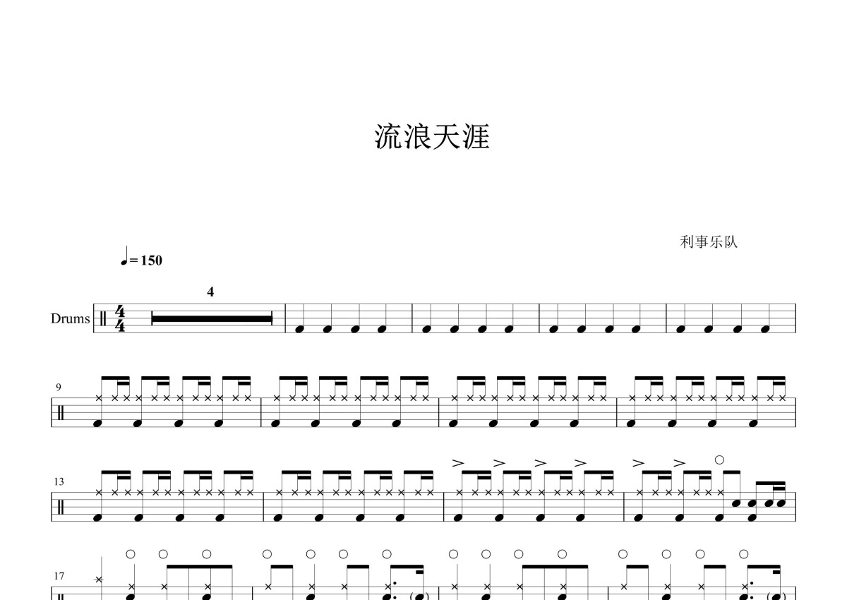 利事乐队《流浪天涯》鼓谱 - 架子鼓谱