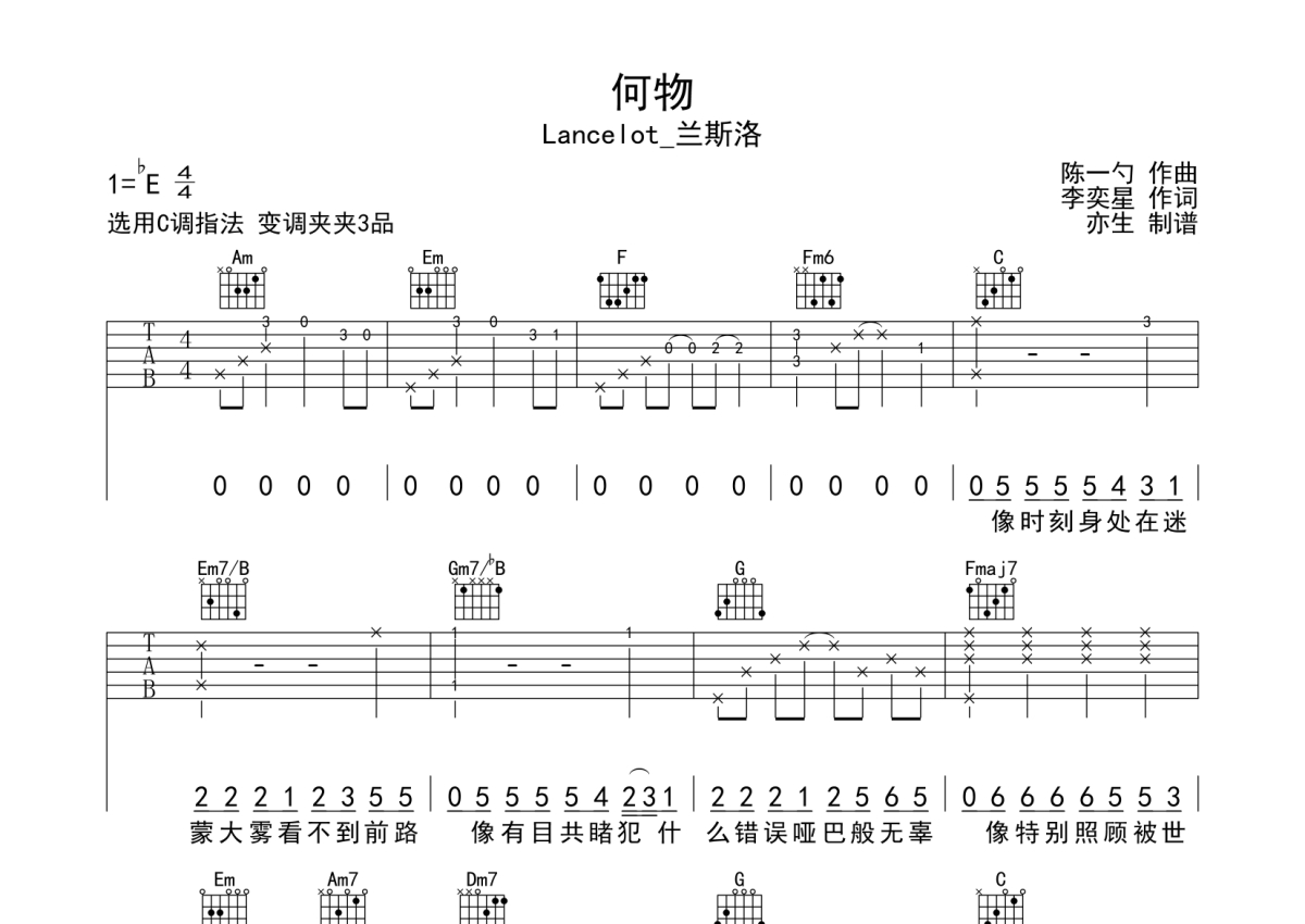 Lancelot_兰斯洛《何物》吉他谱 - C调弹唱六线谱