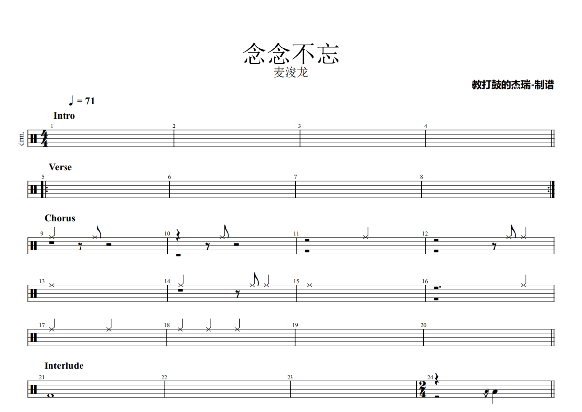 麦浚龙《念念不忘》鼓谱 - 架子鼓谱
