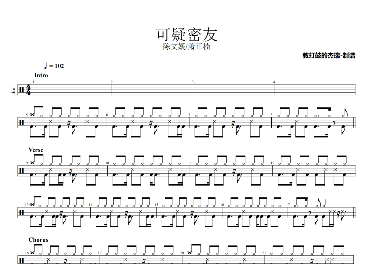 陈文媛/萧正楠《可疑密友》鼓谱 - 架子鼓谱