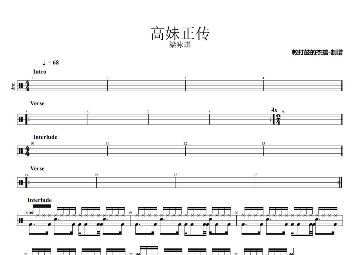 梁咏琪《高妹正传》鼓谱 - 架子鼓谱