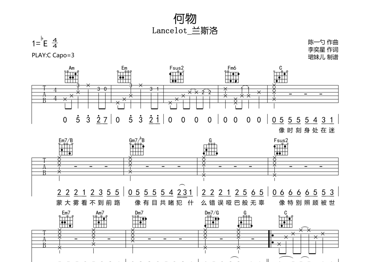 Lancelot_兰斯洛《何物》吉他谱 - C调弹唱六线谱