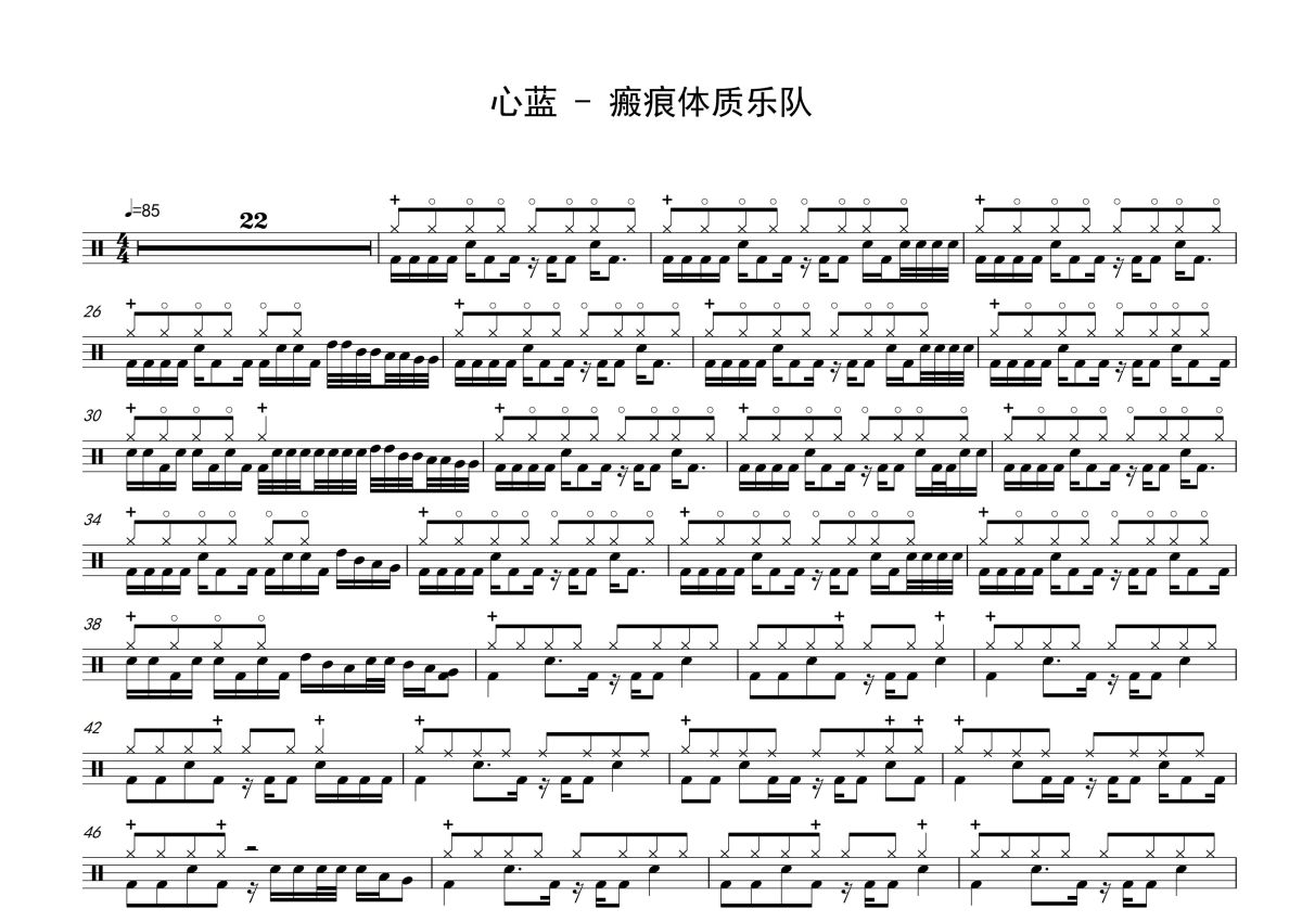 瘢痕体质乐队《心蓝》鼓谱 - 架子鼓谱