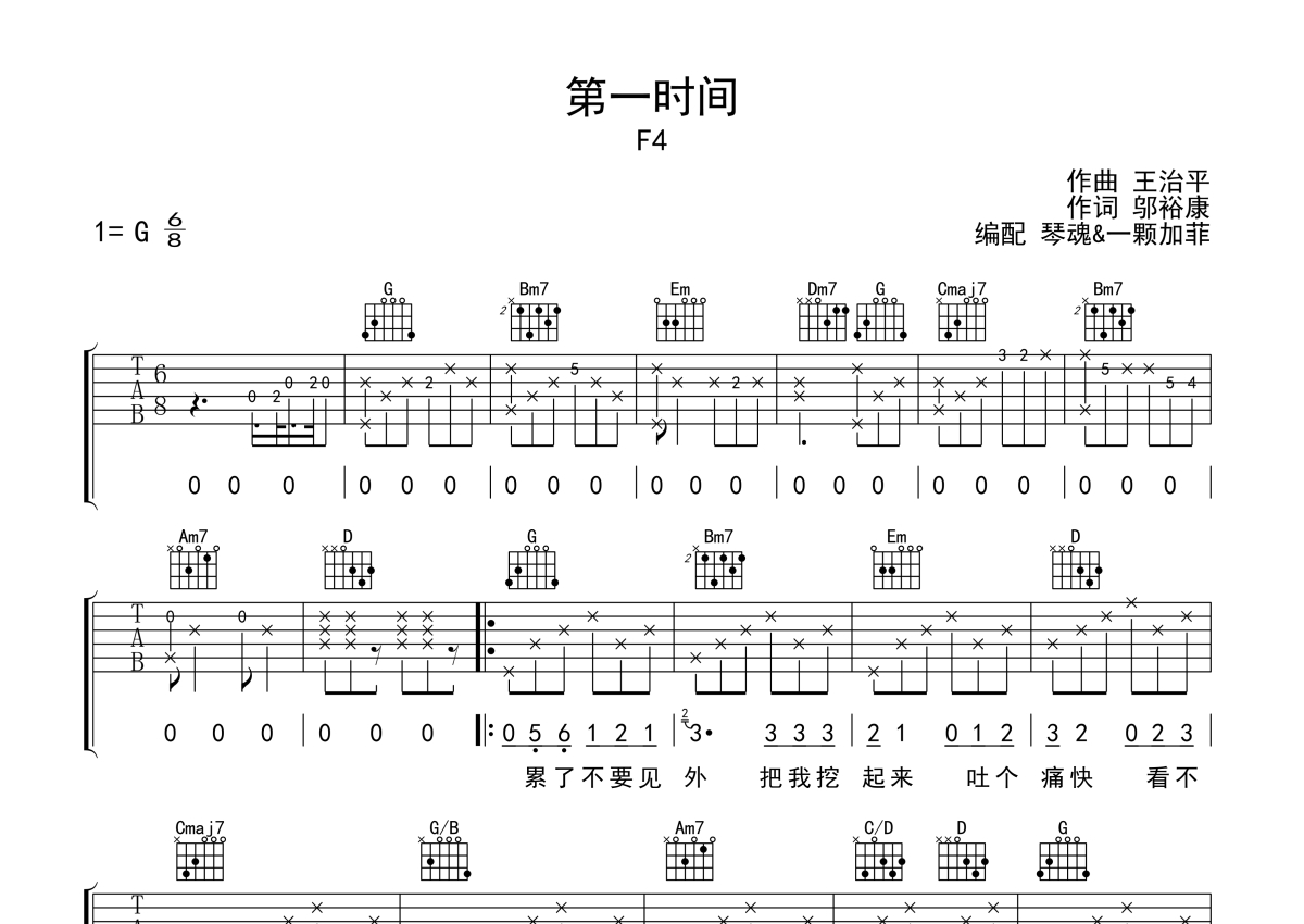 F4《第一时间》吉他谱 - G调弹唱六线谱