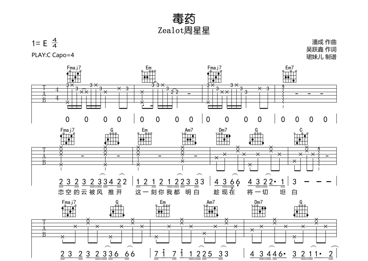 Zealot周星星《毒药》吉他谱 - C调弹唱六线谱