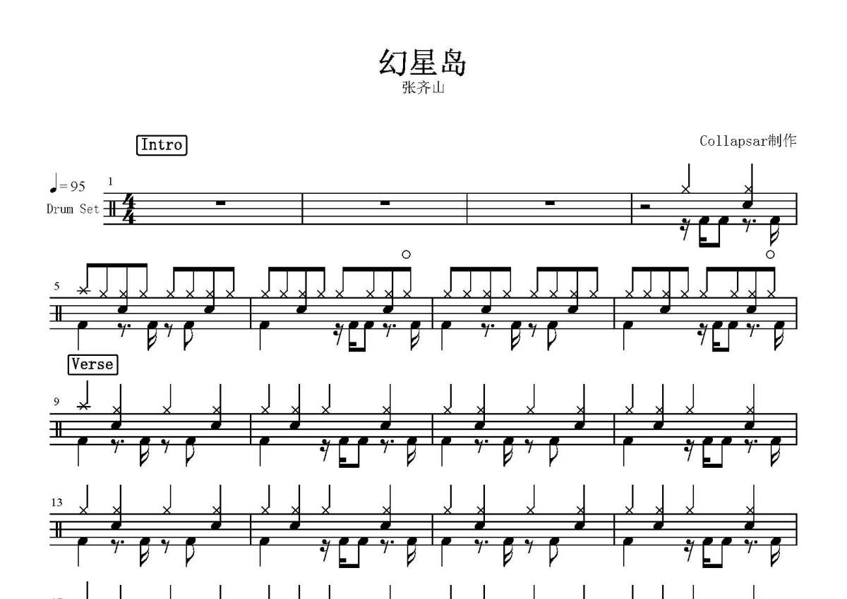 张齐山《幻星岛》鼓谱 - 架子鼓谱