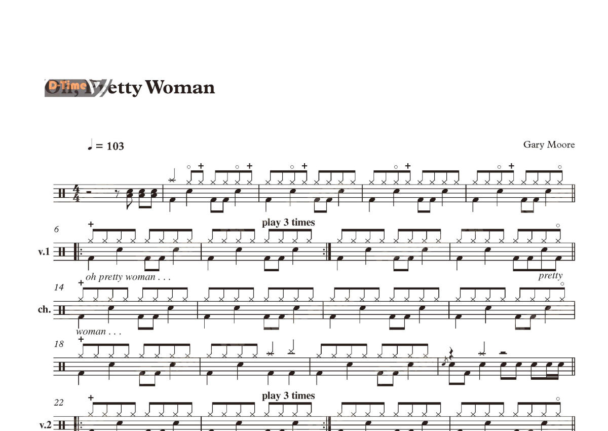 Gary Moore《Oh Pretty Woman》架子鼓谱