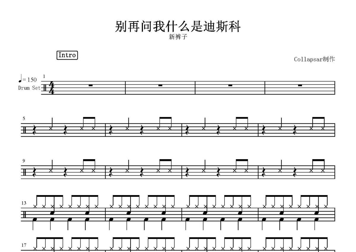 新裤子乐队《别再问我什么是迪斯科》鼓谱 - 架子鼓谱