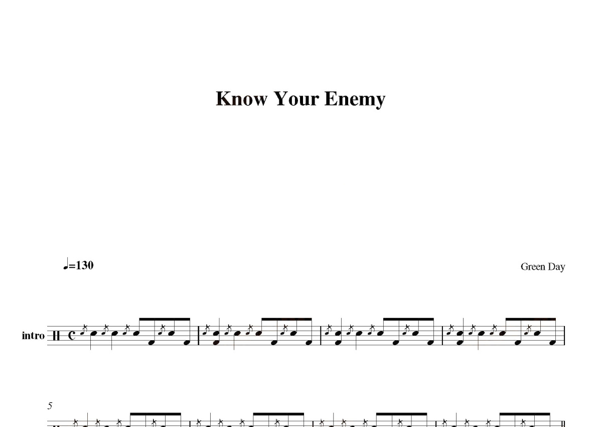 《Know your enemy》是Green Day演唱的一首歌曲,这份鼓谱共有三张高清图谱,图谱由 @打鼓谱 编配上传,图谱使用五线谱编配,使用这份Know your enemy架子鼓谱,你将能够轻松地敲打出这首Green Day的Know your enemy,快来尝试吧。首张收录专辑: 世纪大崩解