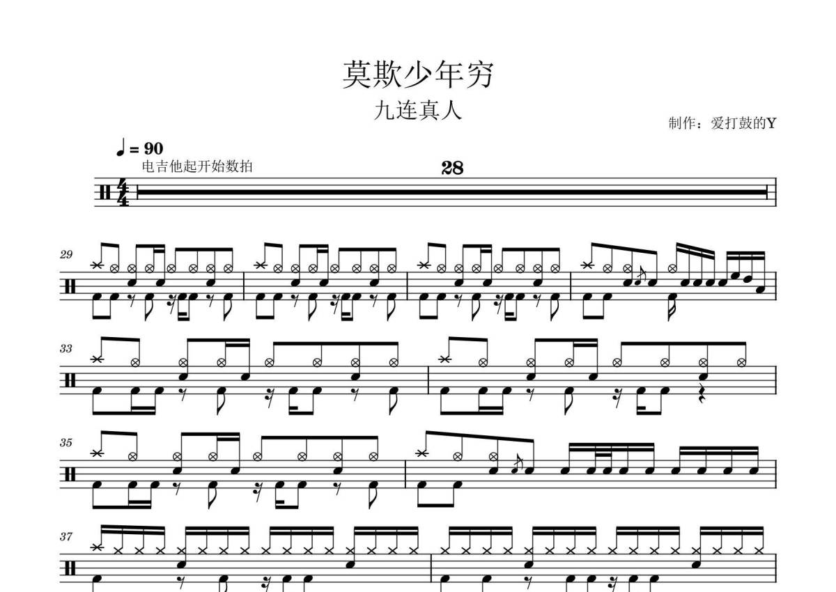 九连真人《莫欺少年穷》鼓谱 - 架子鼓谱