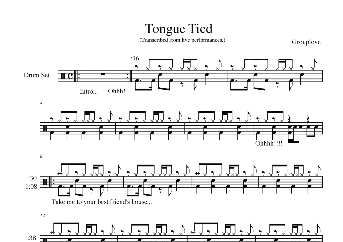 Grouplove《tongue tied》鼓谱 - 架子鼓谱
