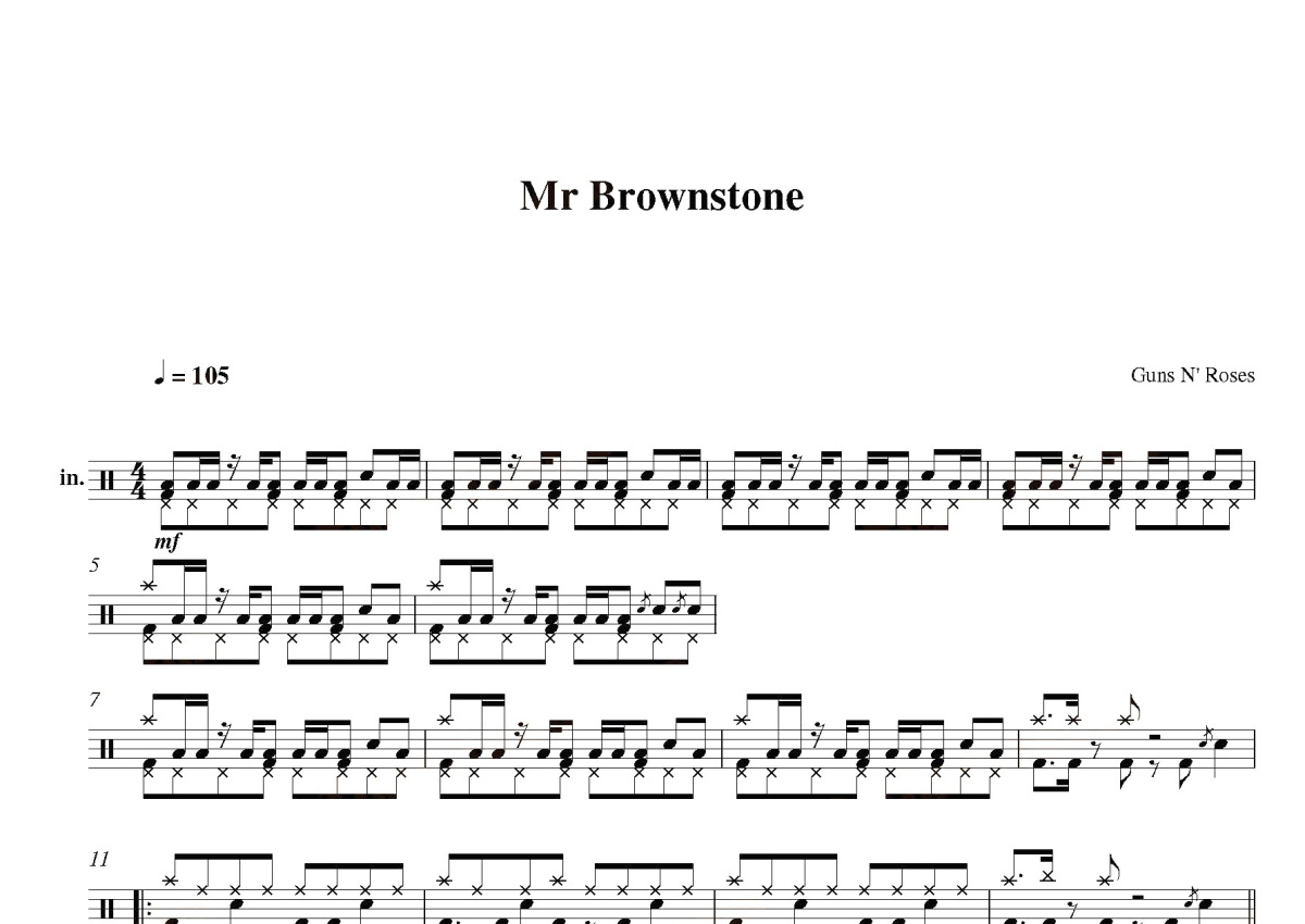 Guns N' Roses《mr brownstone》鼓谱 - 架子鼓谱