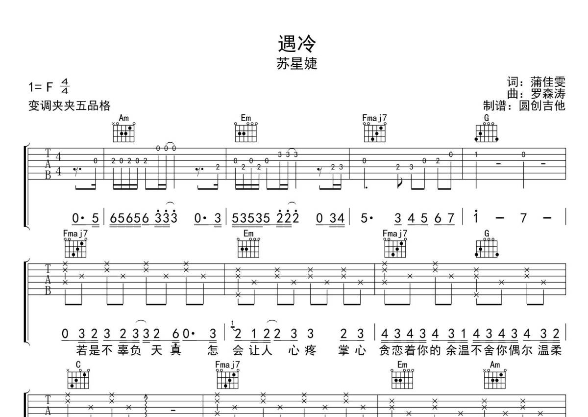 苏星婕《遇冷》吉他谱 - C调弹唱六线谱 - 专辑原版