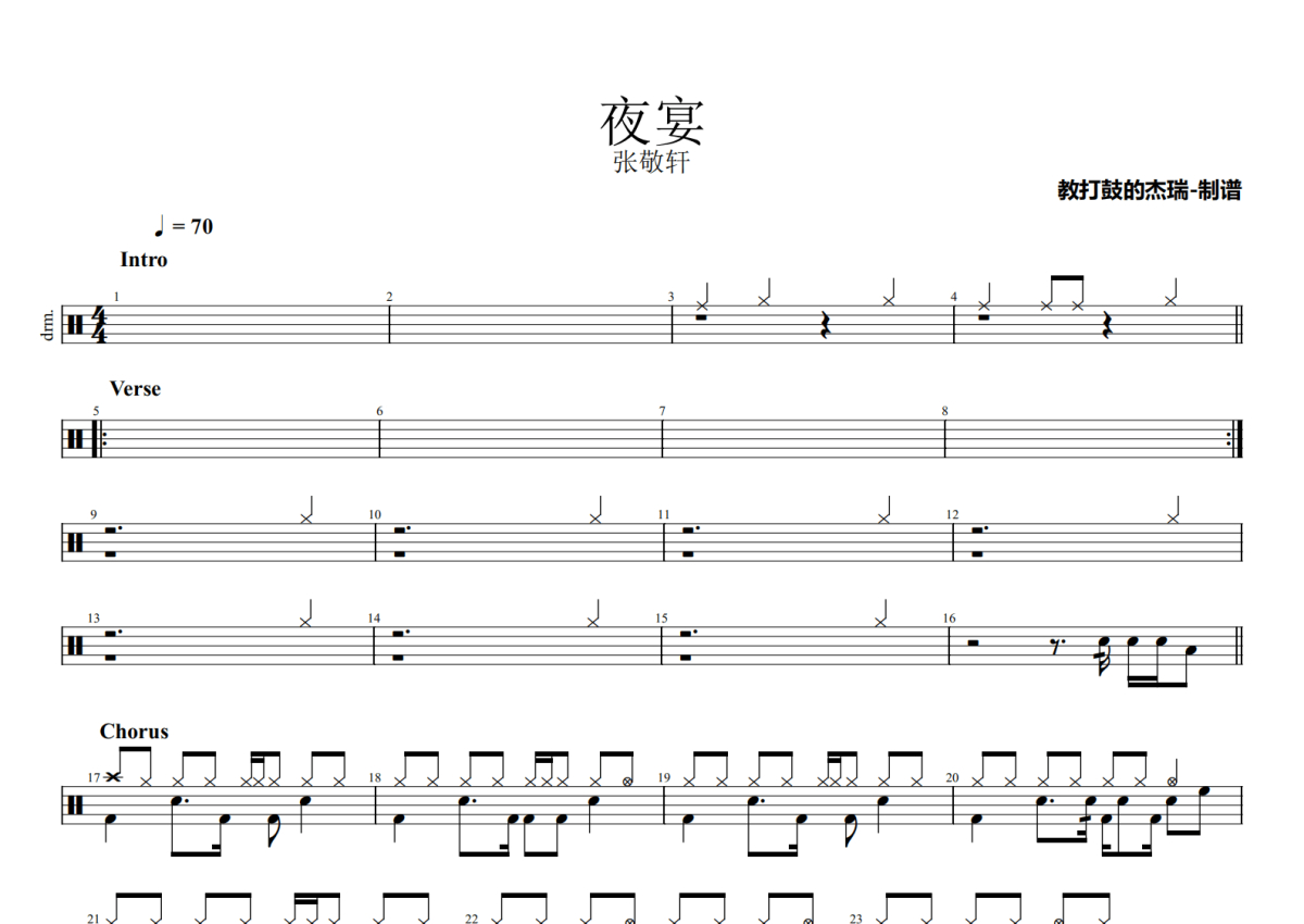 张敬轩《夜宴》鼓谱 - 架子鼓谱