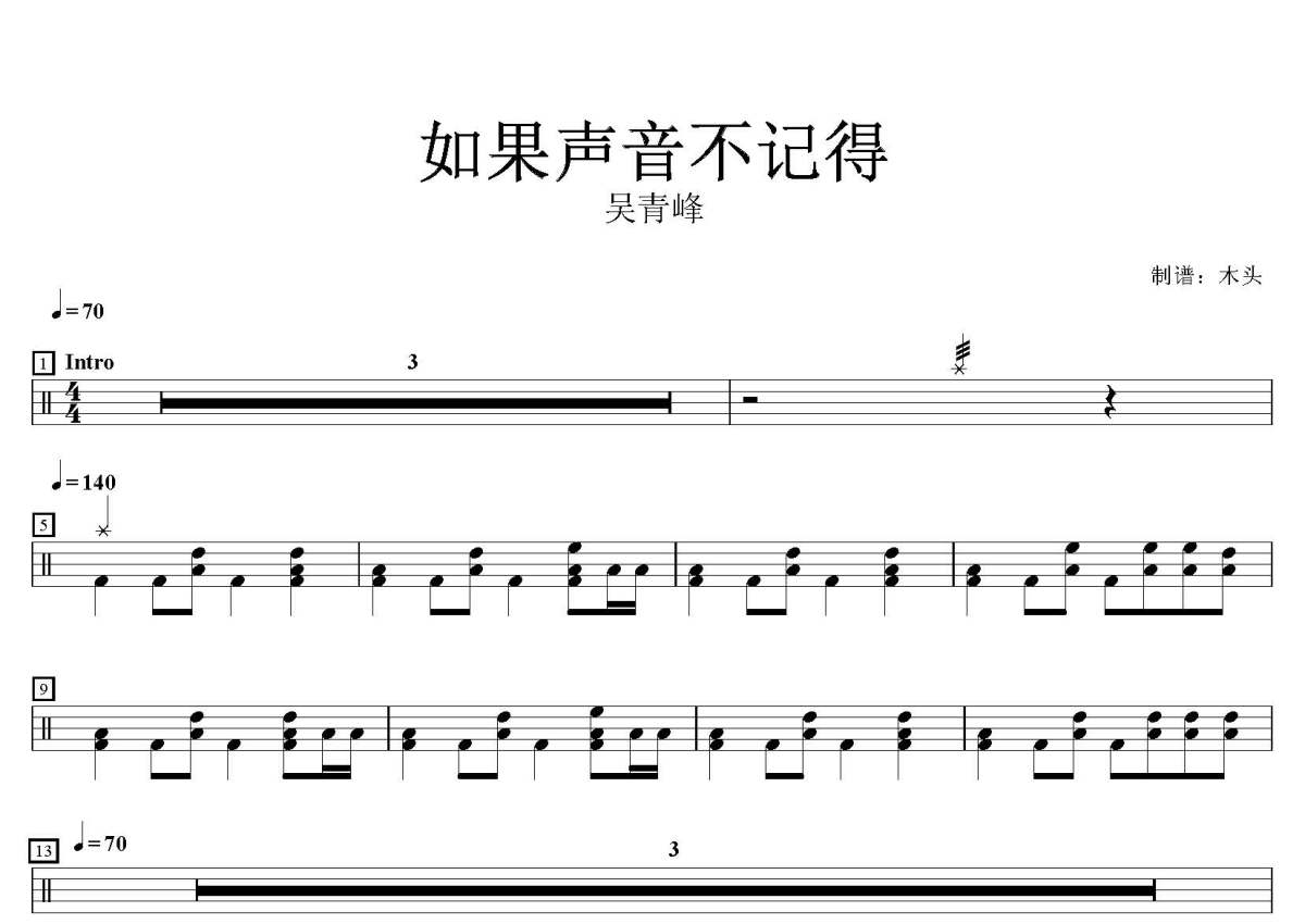 吴青峰《如果声音不记得》鼓谱 - 架子鼓谱