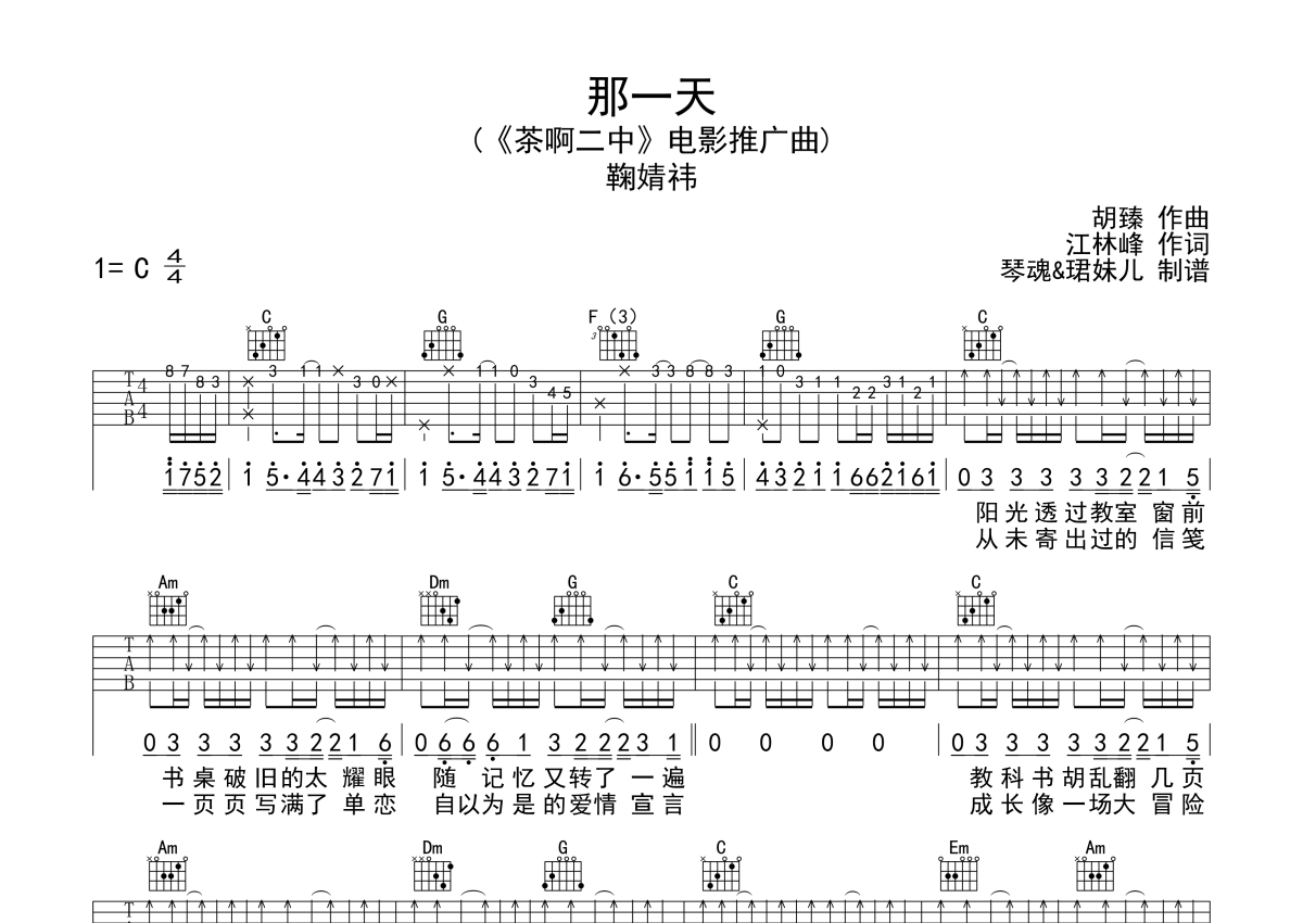 鞠婧祎《那一天》吉他谱 - C调弹唱六线谱