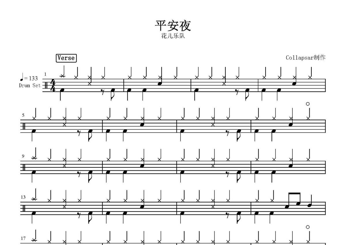 花儿乐队《平安夜》鼓谱 - 架子鼓谱