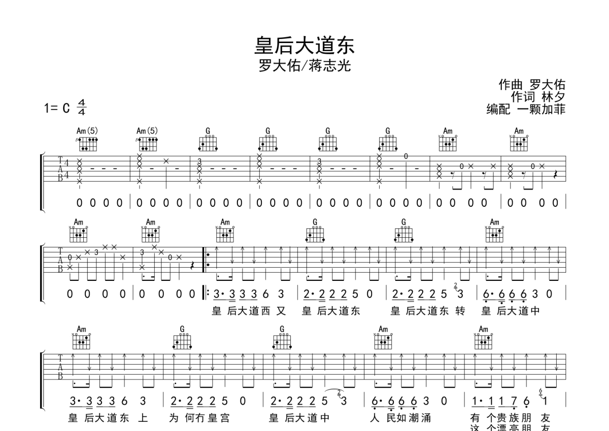 罗大佑《皇后大道东》吉他谱 - C调弹唱六线谱