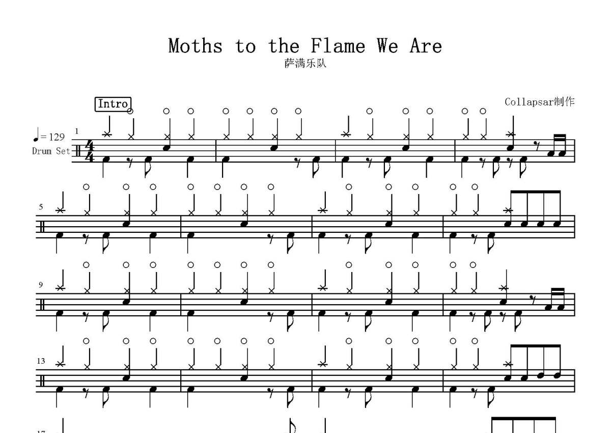萨满乐队《Moths to the Flame We Are》鼓谱 - 架子鼓谱