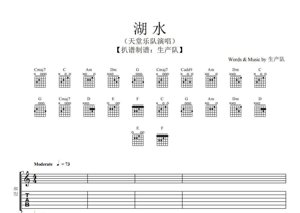 《湖水》是天堂乐队演唱的一首歌曲,歌曲速度为每分钟73拍,这份乐队总谱共有一张高清图谱,图谱由 @生产队 编配上传天堂乐队《湖水》乐队总谱,包含:吉他,贝斯,鼓,键盘,主旋律等共7轨。完整版共52页,购买后需要下载PDF。
