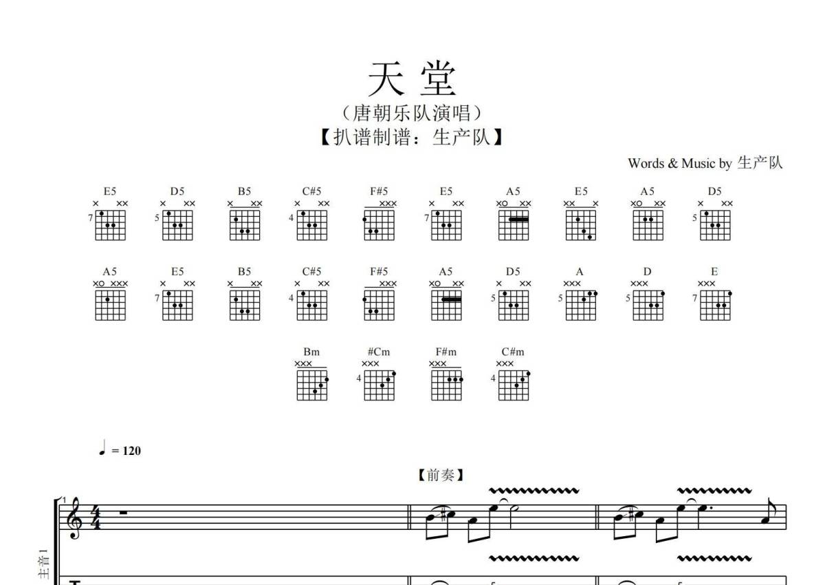 《天堂》是唐朝乐队演唱的一首歌曲,拍号为4/4拍,这份乐队总谱共有一张高清图谱,图谱由 @生产队 编配上传唐朝乐队《天堂》乐队总谱,包含:吉他(主音),吉他(节奏),贝斯,鼓,键盘,主旋律共8轨。完整版共122页,购买后需要下载PDF。