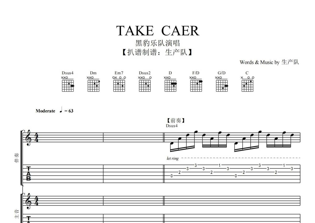 《TAKE CAER》是黑豹乐队演唱的一首歌曲,拍号为4/4拍,歌曲速度为每分钟63拍,这份乐队总谱共有一张高清图谱,图谱由 @生产队 编配上传黑豹乐队演唱的《TAKE CAER》乐队总谱,包含:吉他,贝斯,键盘,鼓,主旋律等共7轨。完整版共49页,购买后需要下载PDF。