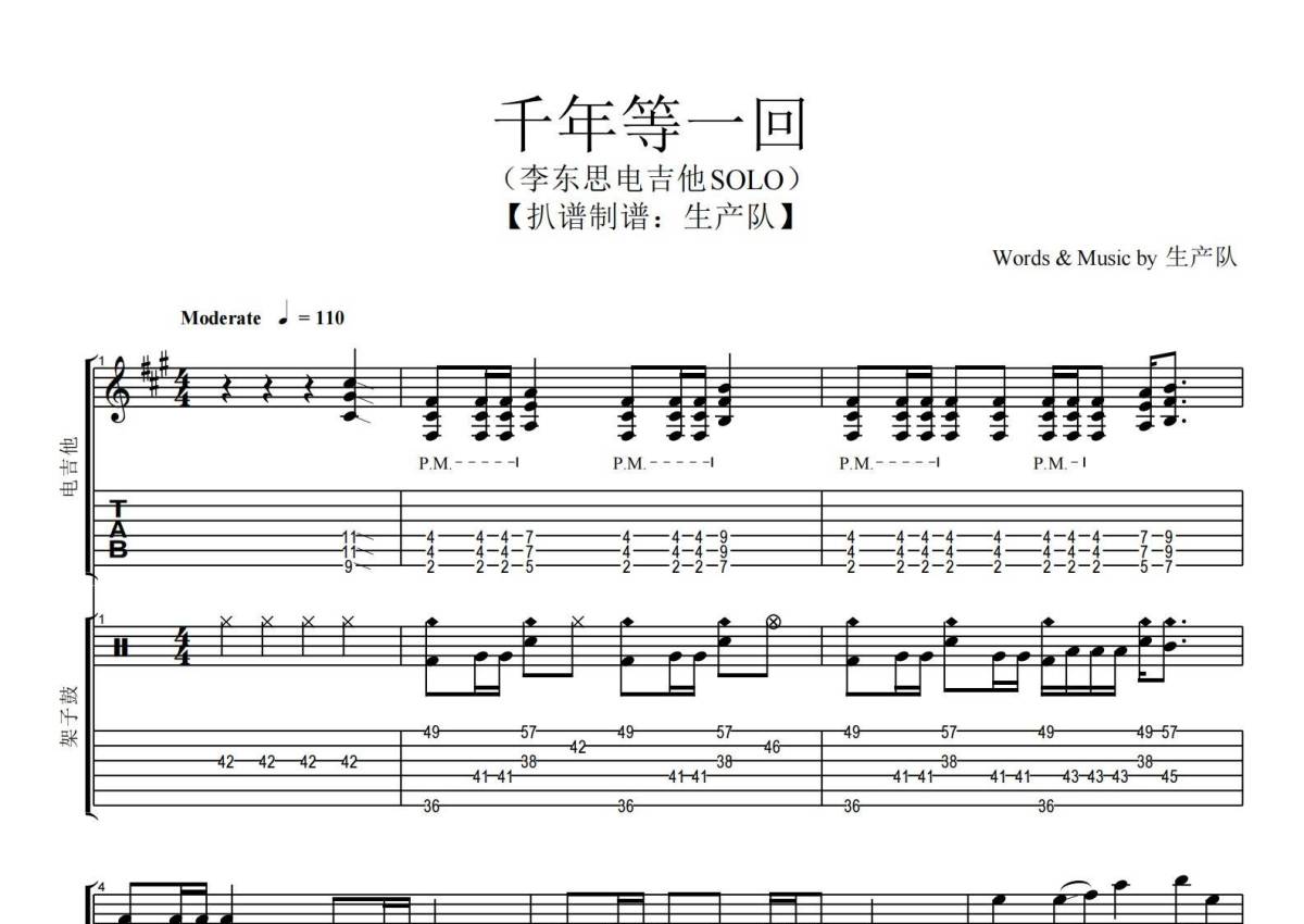 李东思《千年等一回》电吉他谱 - 电吉他SOLO+鼓