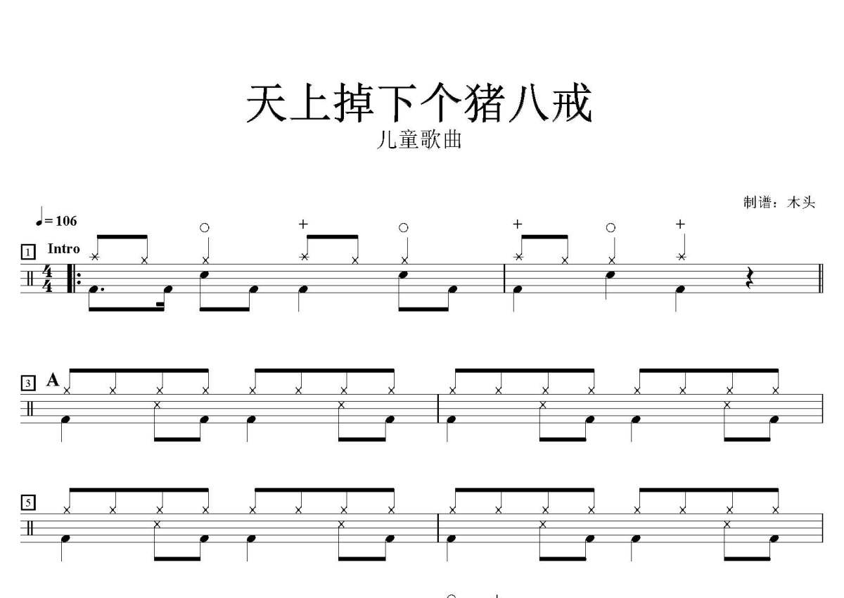 儿童歌曲《天上掉下个猪八戒》鼓谱 - 架子鼓谱