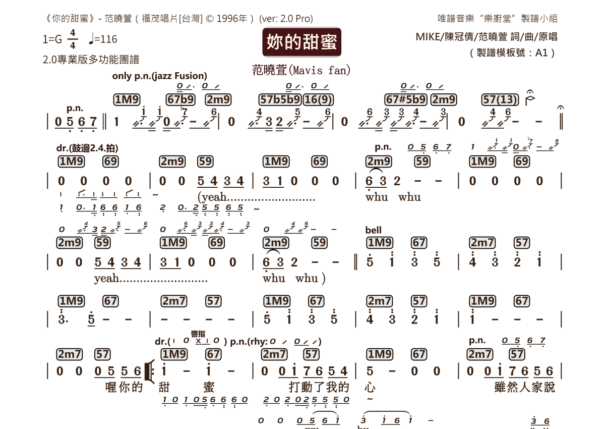 你的甜蜜乐队总谱 - 范晓萱演唱 - 2.0版多功能团谱