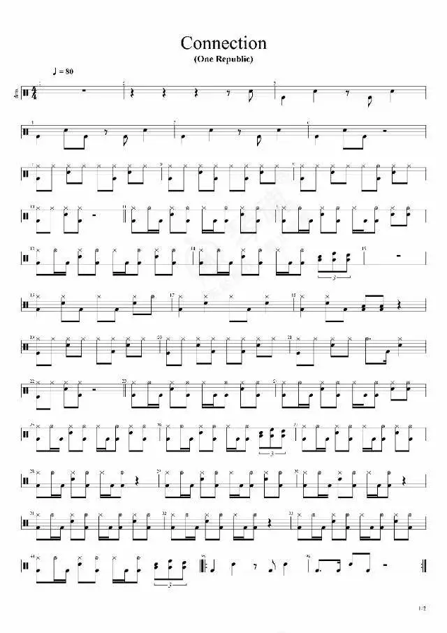 OneRepublic《Connection》鼓谱 - 架子鼓谱