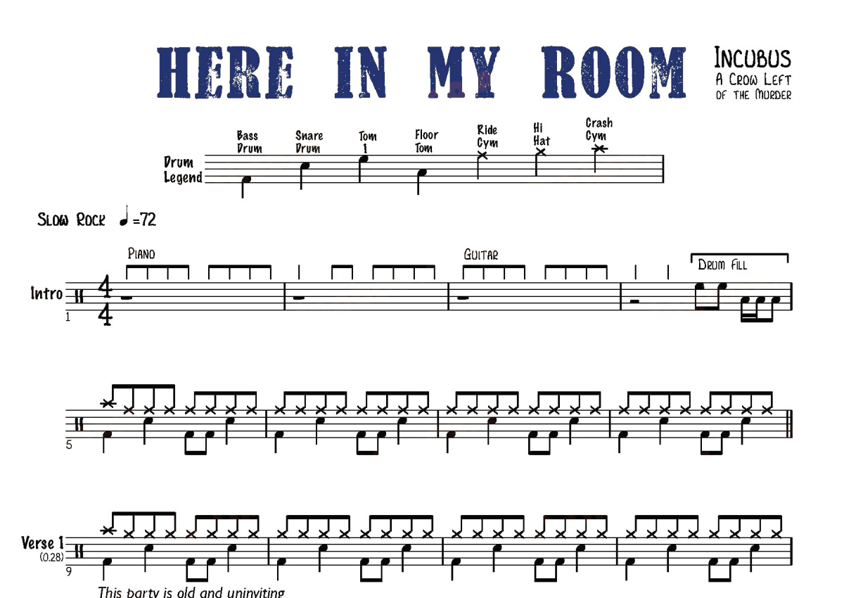 Incubus《Here In My Room》鼓谱 - 架子鼓谱
