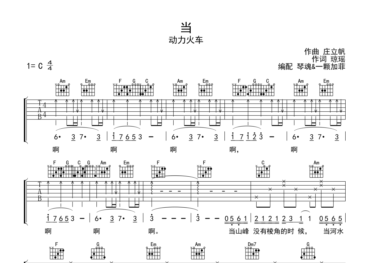 动力火车《当》吉他谱 - C调弹唱六线谱