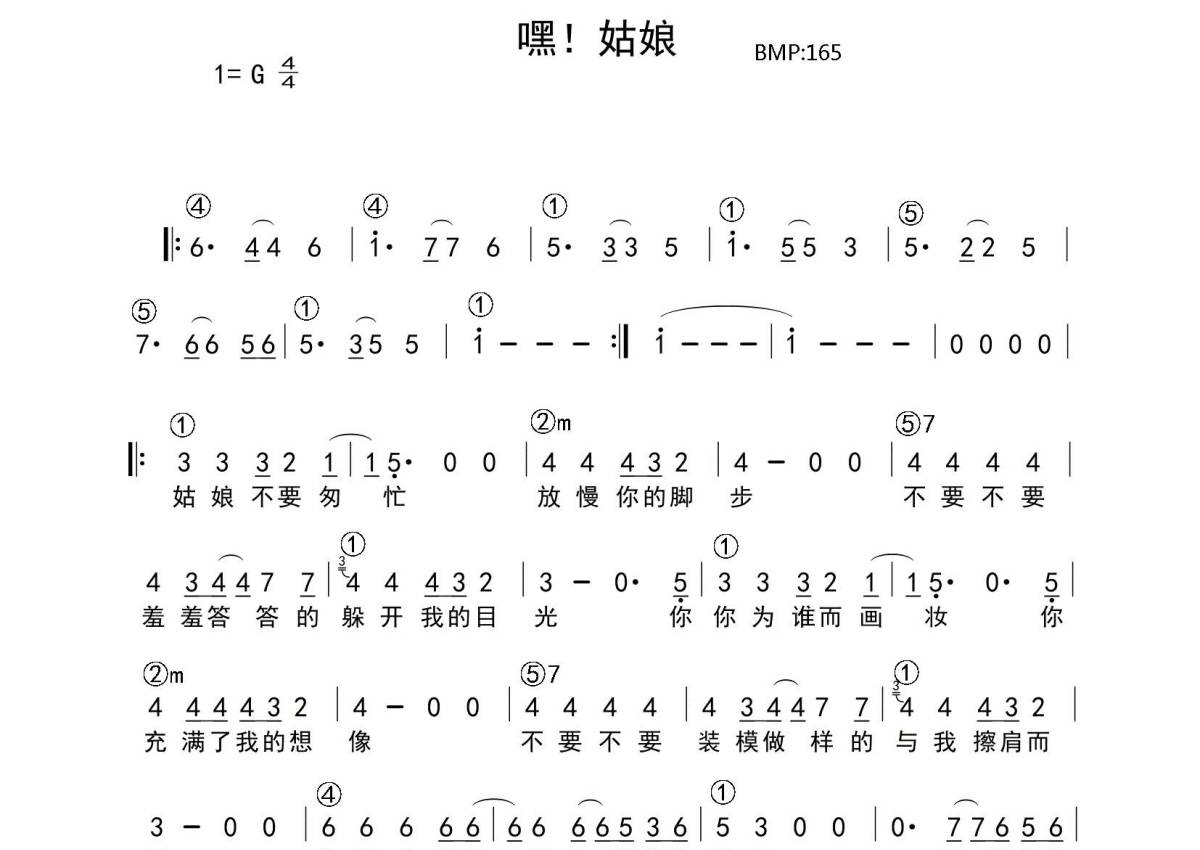 《嘿,姑娘!》是反光镜乐队演唱的一首歌曲,功能谱/级数谱/吉他谱,拍号为4/4拍,这份简谱共有一张高清图谱,图谱由 @星耀琴行-现代乐器中心 编配上传。