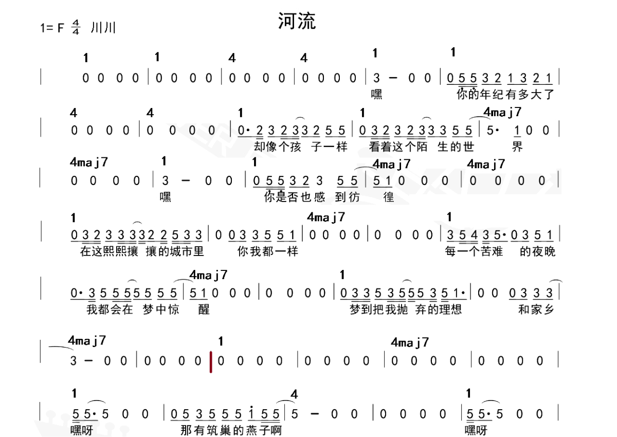 川川《河流》简谱 - 功能谱/级数谱/吉他谱
