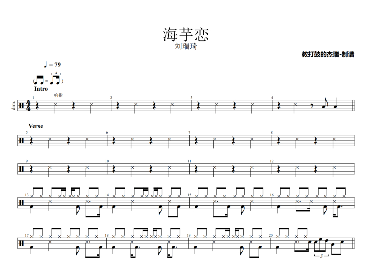 刘瑞琦《海芋恋》鼓谱 - 架子鼓谱