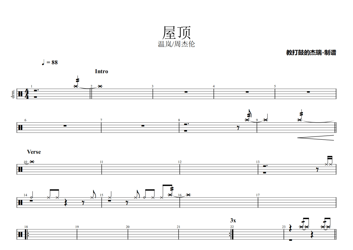 周杰伦 / 温岚《屋顶》鼓谱 - 架子鼓谱